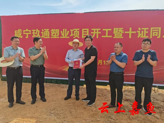 云上嘉鱼报道(全媒体记者邓丹)7月12日,我县举行咸宁玖通塑业项目开工暨十证同发仪式,县委副书记、政法委书记易靖参加仪式并宣布项目正式开工。