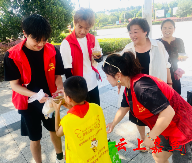 “叔叔,请喝绿豆汤,注意防暑防晒!”活动中,7岁的县蒲公英社工中心公益小天使朱柏辰和他的小伙伴,还有来自社区红色“小喇叭”宣讲团的小小志愿者们也积极参与其中,一边开展慰问,一边呼吁文明,获得市民们的纷纷点赞。