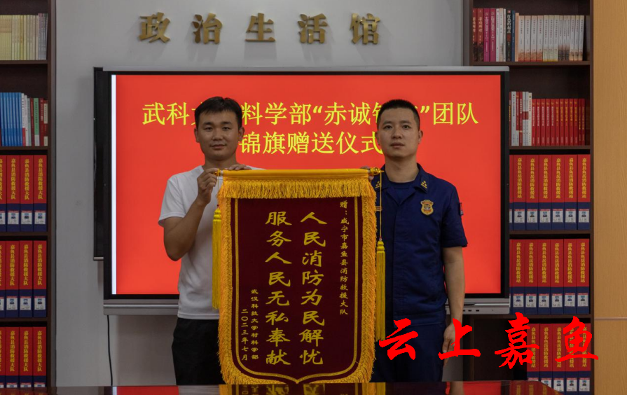 参观学习后,“赤诚铸志”团队为嘉鱼县消防救援大队赠送了锦旗。