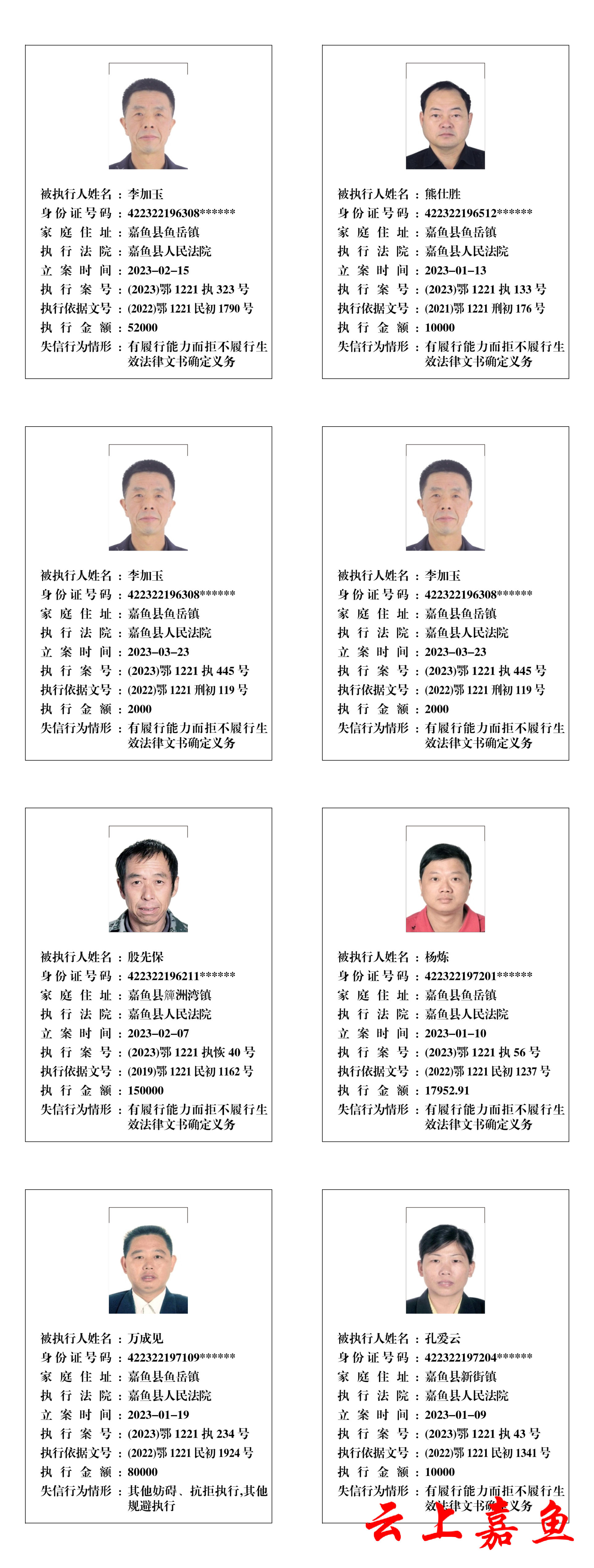 2022年失信被执行人名单信息【第8期】