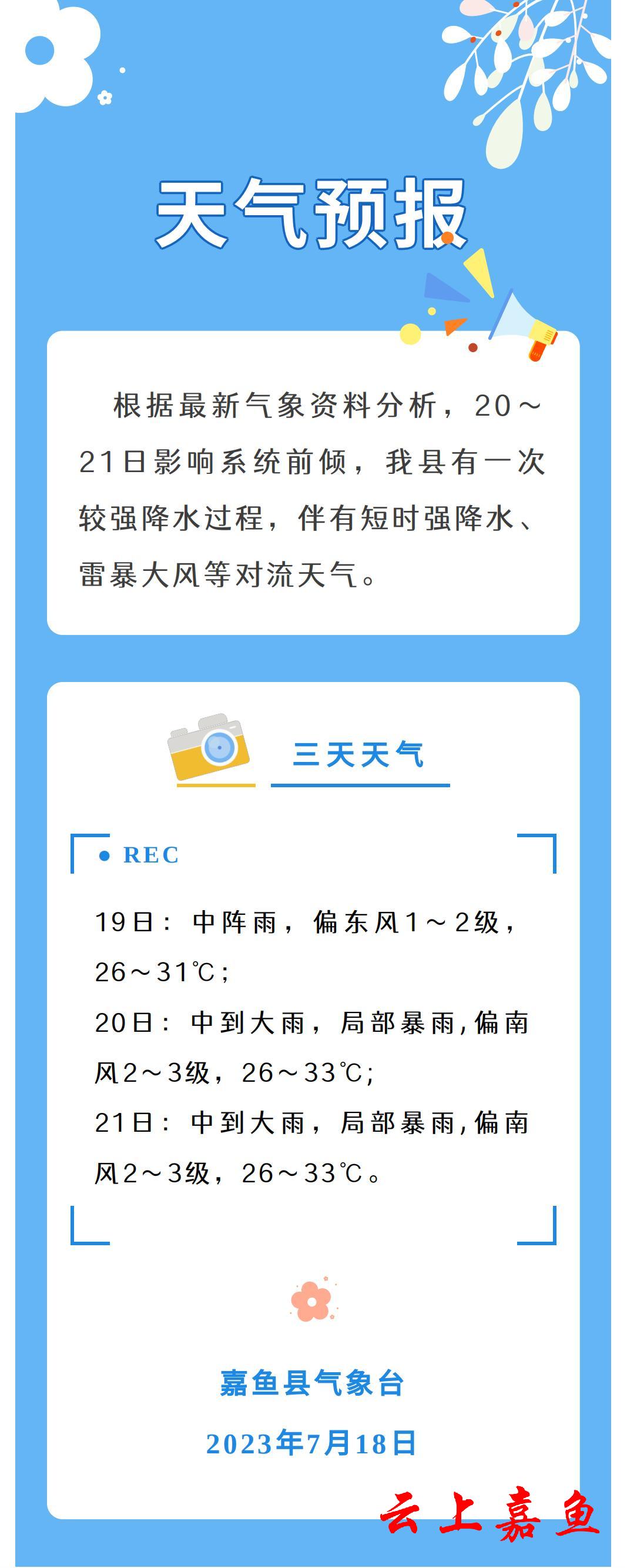 2023年7月18日嘉鱼天气预报