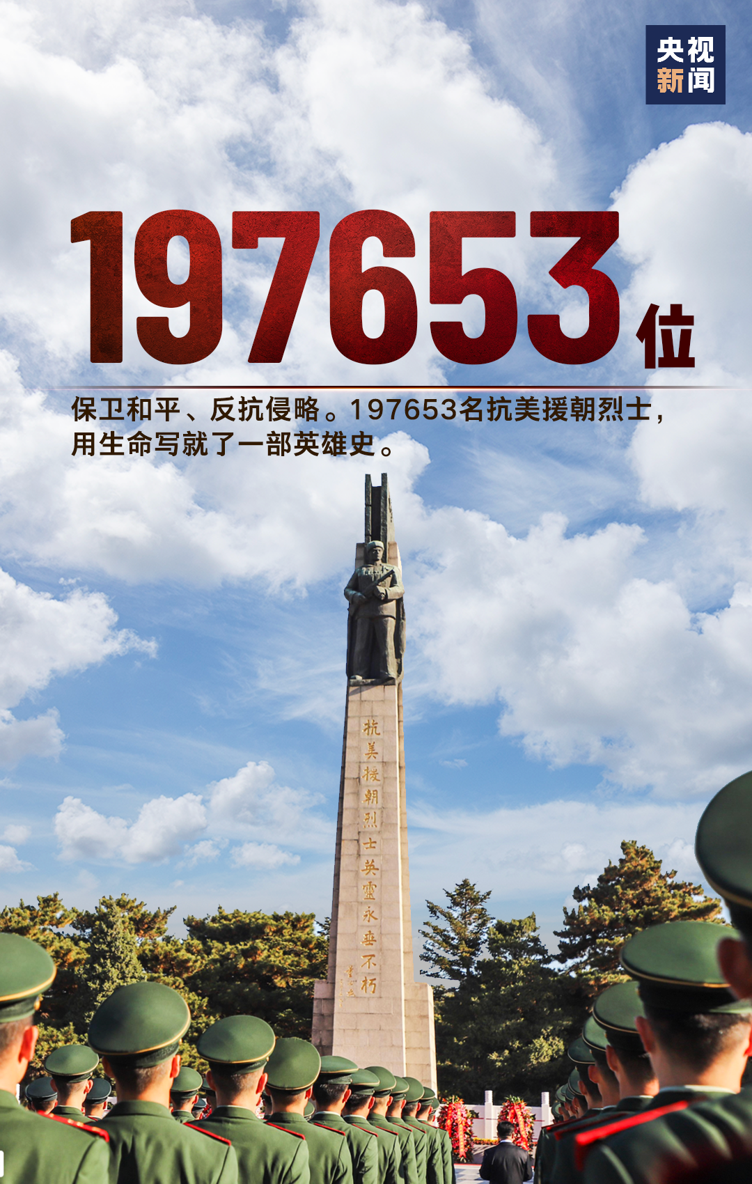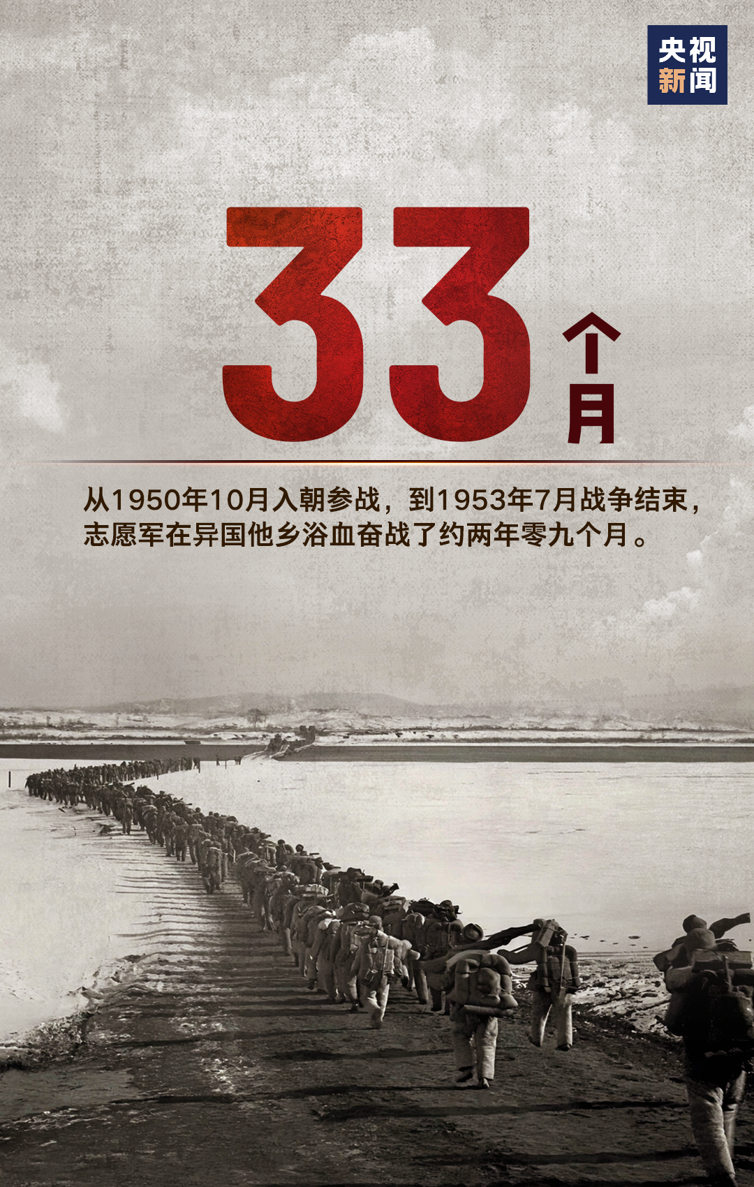 70年前的今天(1953年7月27日),朝鲜停战协定签字仪式在板门店举行,抗美援朝战争胜利结束。 抗美援朝战争的胜利,打破了美帝国主义不可战胜的神话,打出了新中国的国威和人民军队的军威!这一战,拼来了山河无恙、家国安宁,充分展示了中国人民不畏强暴的钢铁意志! 时隔70年,让我们用一组数字铭记来之不易的胜利与和平↓ 来源:央视新闻微信公众号