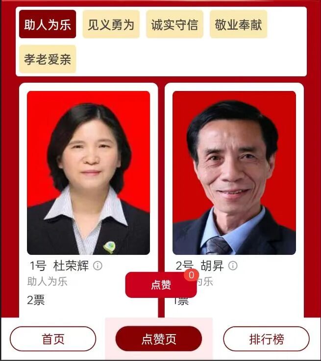 或选择通道“2”,按推荐单位对候选人进行点赞评议