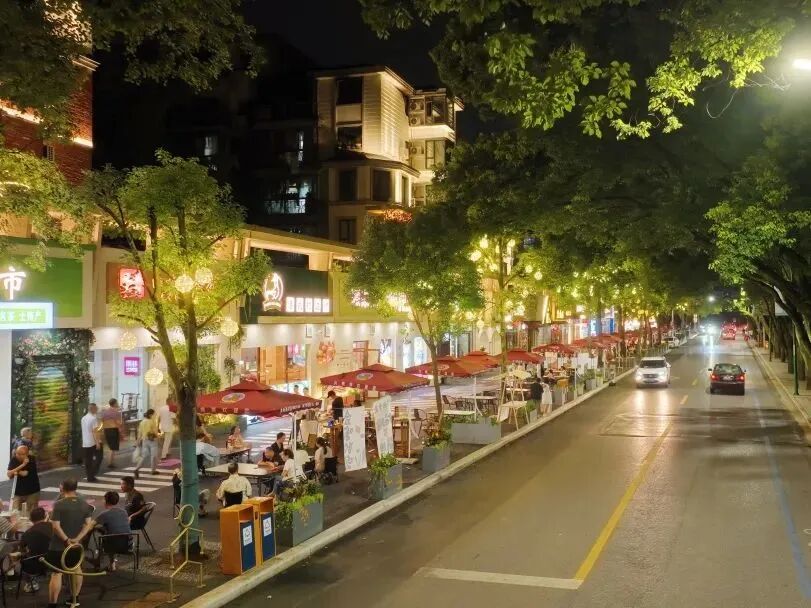 一路上,商铺林立、樟树成荫、两侧绿植相互交错、夜景灯光熠熠生辉,处处展现着咸宁打造自然生态公园城市的底气和优势。