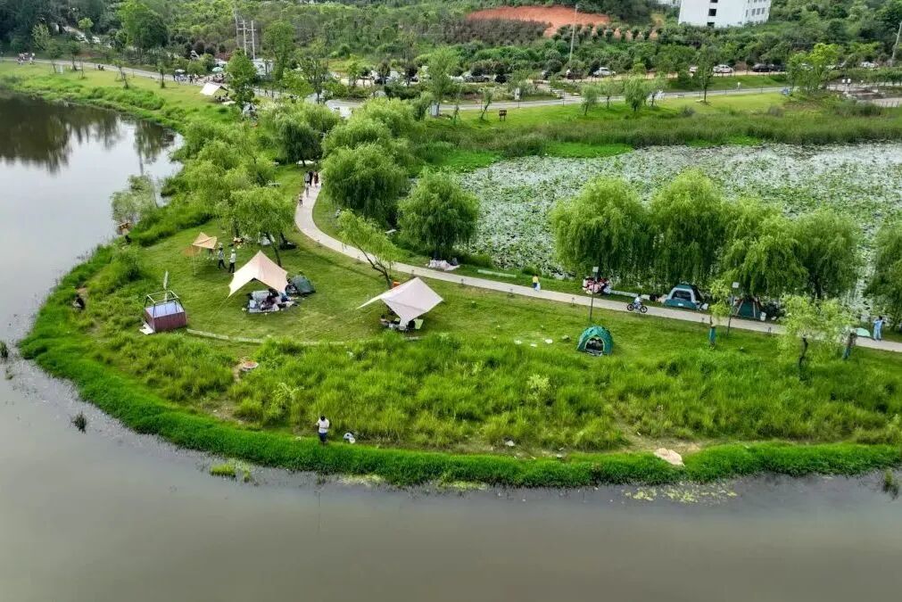 湿地公园内具备丰富的生态景观,绵延的紫色马鞭草花海、碧野环绿水的湿地景观,给市民构建了一处户外游玩的桃花源。露营、烧烤、骑行、漫步......在这里可以尽情享受生态休闲的乐趣。