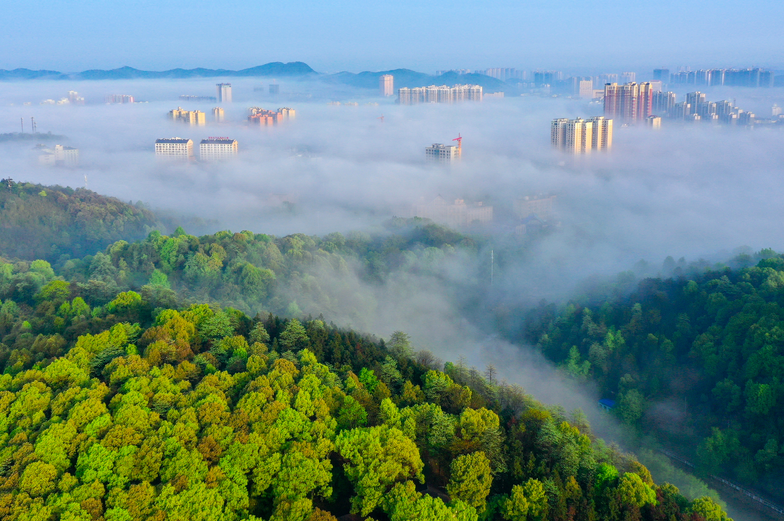 除了潜山国家森林公园,咸宁到处都覆盖着一层无垠的绿色植被和随处可见的口袋公园。