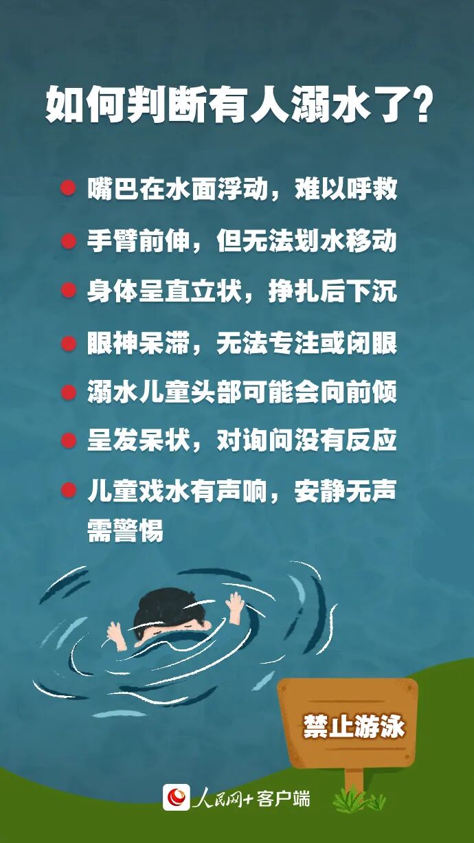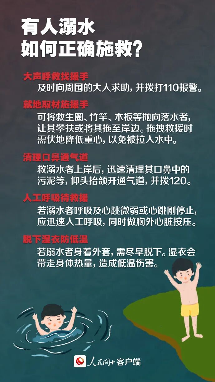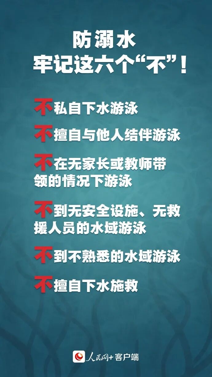 暑期是溺水事故高发期 如何让孩子远离溺水危险? 不幸溺水该如何正确自救? 一起了解! ↓↓↓ “防溺水”知识是师生家长的必修课转给身边的人你的一次提醒可能会挽救一个孩子、一个家庭! 来源:“人民网+”客户端