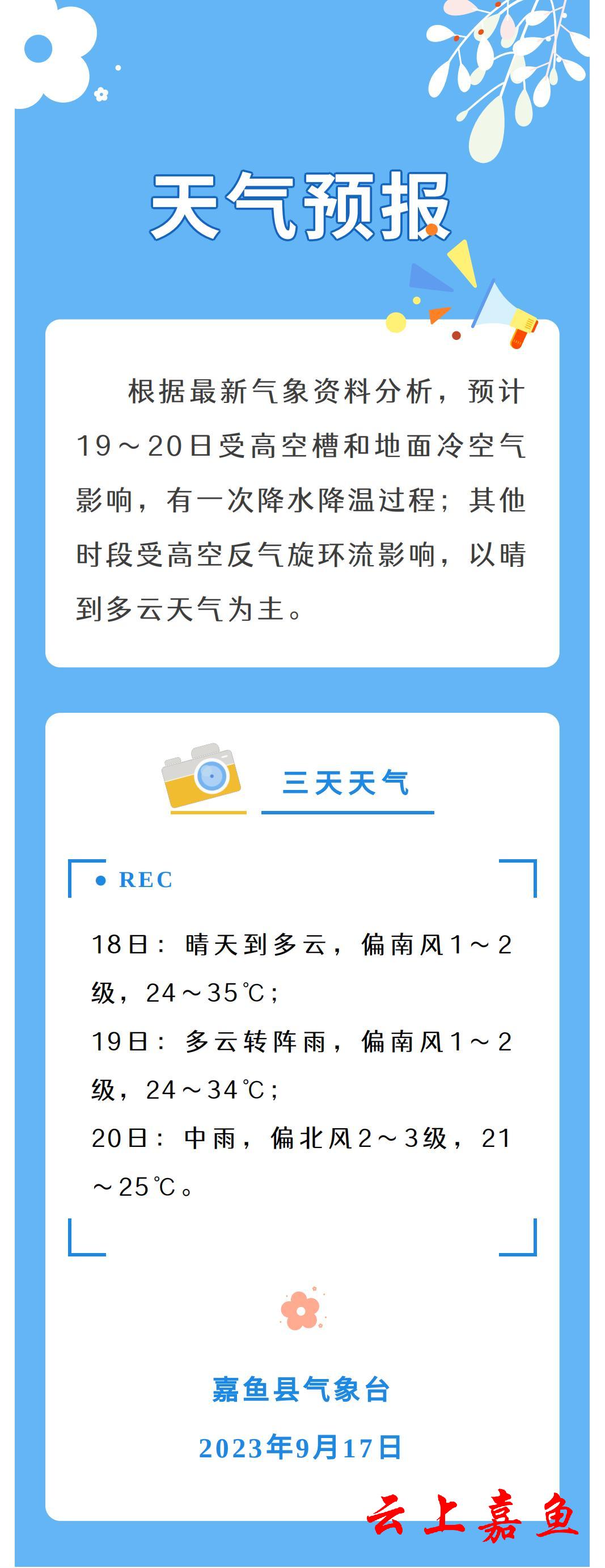 2023年9月17日嘉鱼天气预报