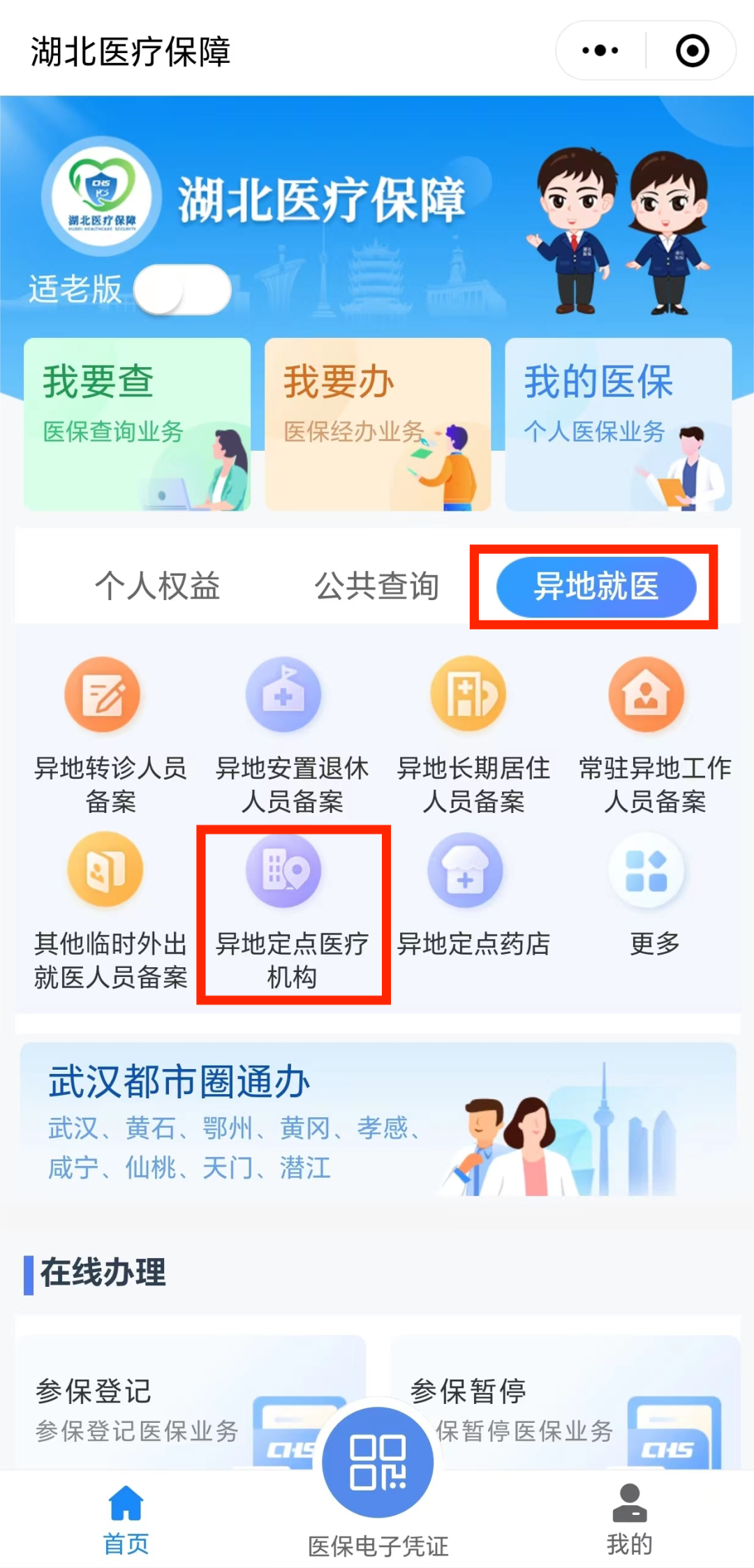 您还可以通过“鄂医保”支付宝小程序、鄂汇办APP、国家医保服务平台APP等多种方式在线查询异地定点医药机构。