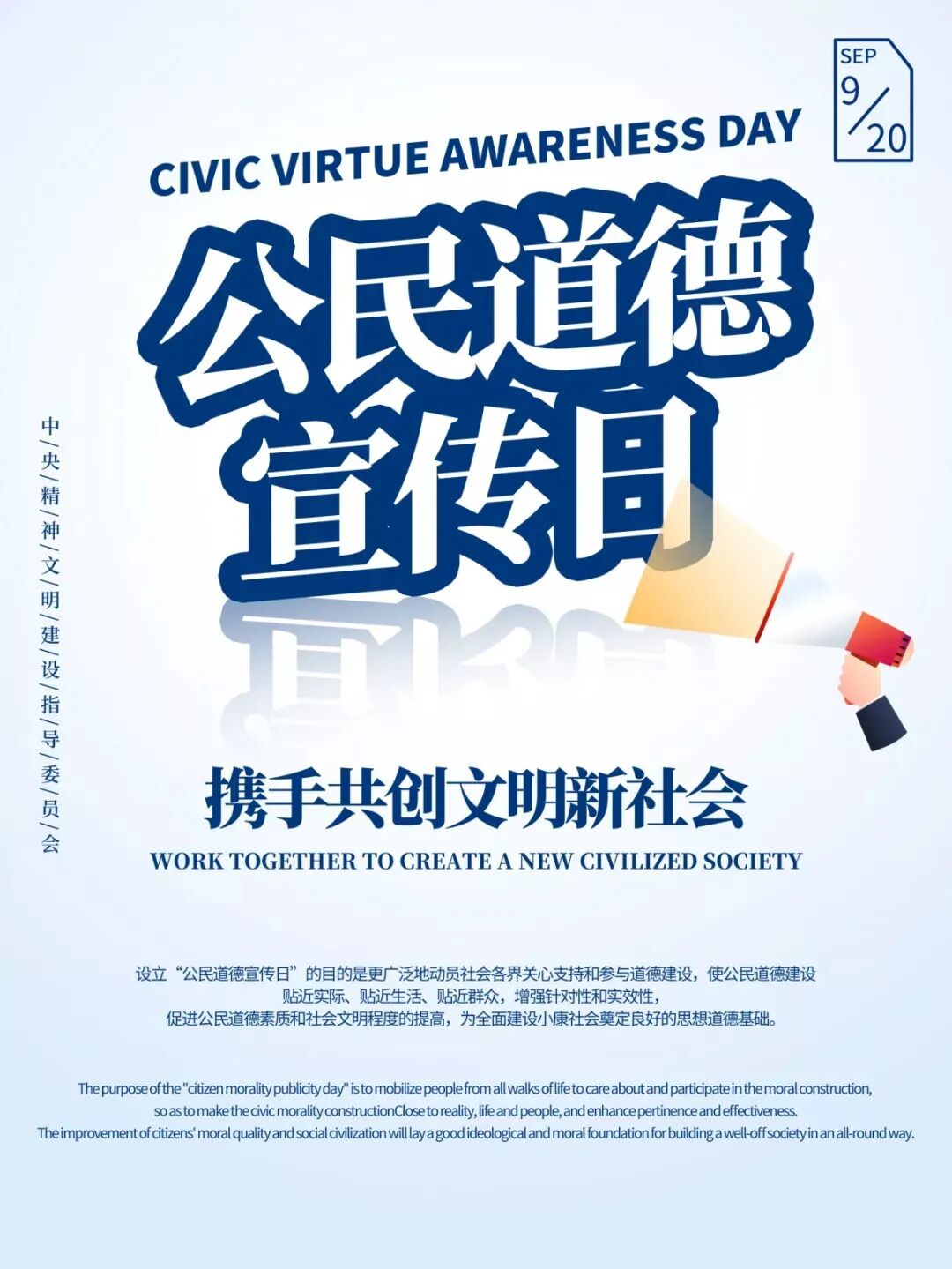 9月20日定为“公民道德宣传日”。其中2013年9月20日是第11个公民道德宣传日。