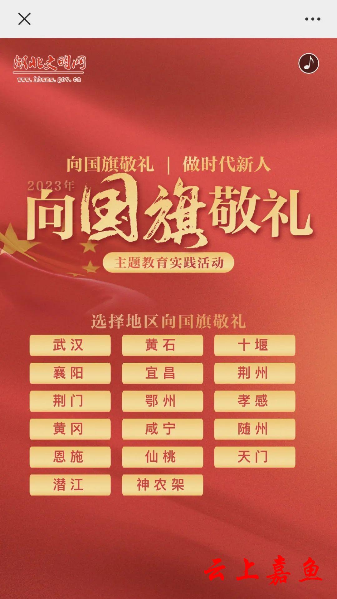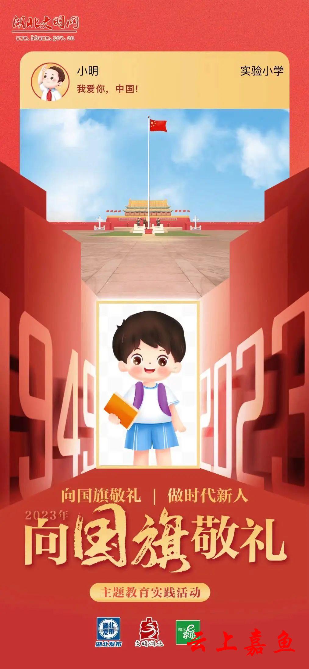 为热烈庆祝中华人民共和国成立74周年,湖北省文明办联合湖北省教育厅、湖北省妇联在国庆节期间,面向全省未成年人组织开展2023年“向国旗敬礼”主题教育实践活动。通过线上、线下相结合的方式,引导未成年人传承红色基因,坚定理想信念,努力成长为堪当民族复兴大任的时代新人。