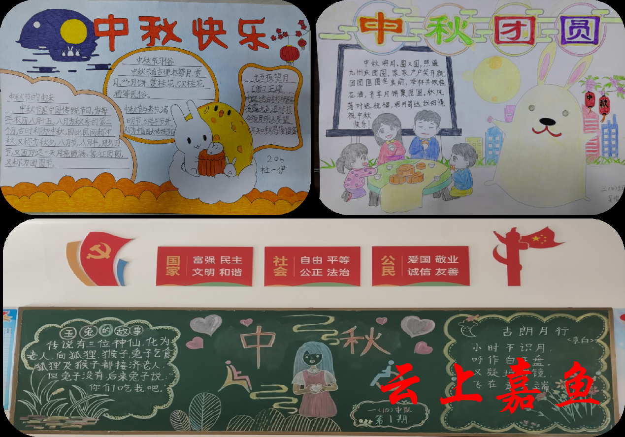 笔墨含情绘中秋,意蕴深远咏团圆。巧动双手绘中秋,同学们化身民俗传承人,用手中的画笔勾勒出了一幅幅精美的手抄报、绘画作品、黑板报等,为喜庆的节日增添了色彩,表达了对传统节日的喜爱之情。