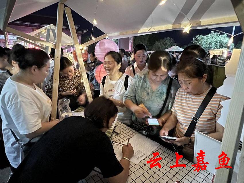 云上嘉鱼报道(全媒体记者皮道琦 通讯员刘喜)“走啦,去赶集!”9月28日下午6时,二乔公园人山人海。当天,由鱼岳镇新时代文明实践所、东街社区新时代文明实践站主办,社区“社商联盟”企业协办的“月满华诞全民贺中秋庆国庆 共享幸福美好社区生活”文明集市游园会如期而至。