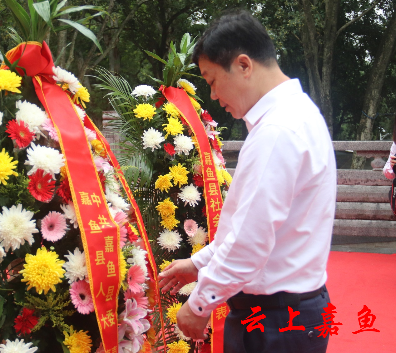 云上嘉鱼报道(全媒体记者雷佳敏)鲜花敬英雄,垂首寄哀思。2023年9月30日,是我国第十个烈士纪念日,当天上午,嘉鱼县举行“烈士纪念日”向烈士敬献花篮仪式,深切缅怀革命先烈不朽功绩,传承红色基因,进一步增强全县人民家国意识,激发拼搏进取动力,凝聚起“打造湖北强县工程示范、建设滨江生态公园城市”的宏伟力量。
