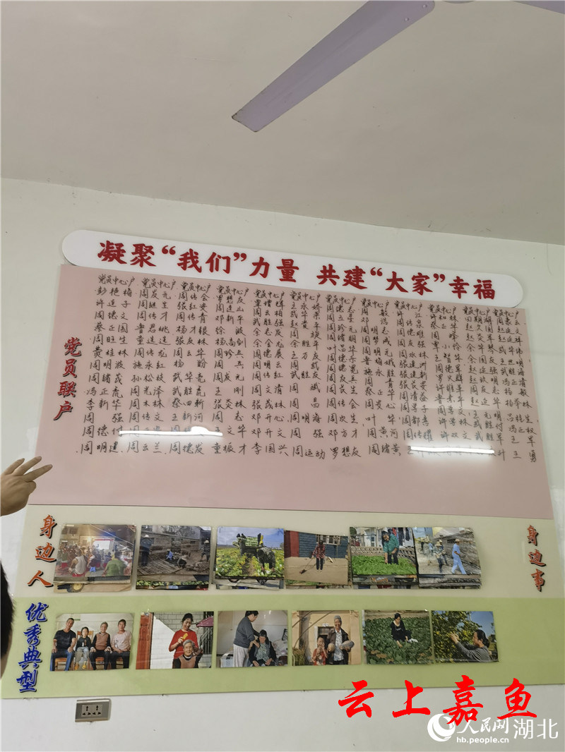 咸宁市嘉鱼县潘家湾镇肖家洲村“党员联户”公示。人民网记者 周雯摄