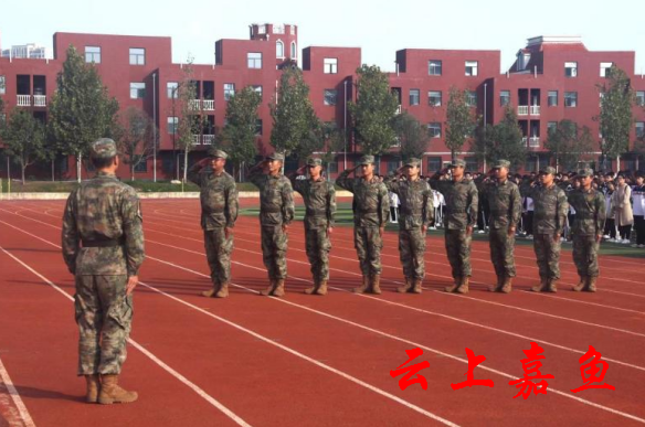 该校校长在新生军训开营仪式致辞中指出,要端正态度,积极备训,经受住考验,发扬不怕苦不怕累的精神,用汗水浇灌青春梦想,用行动诠释责任担当,以饱满的热情完成军训任务。
