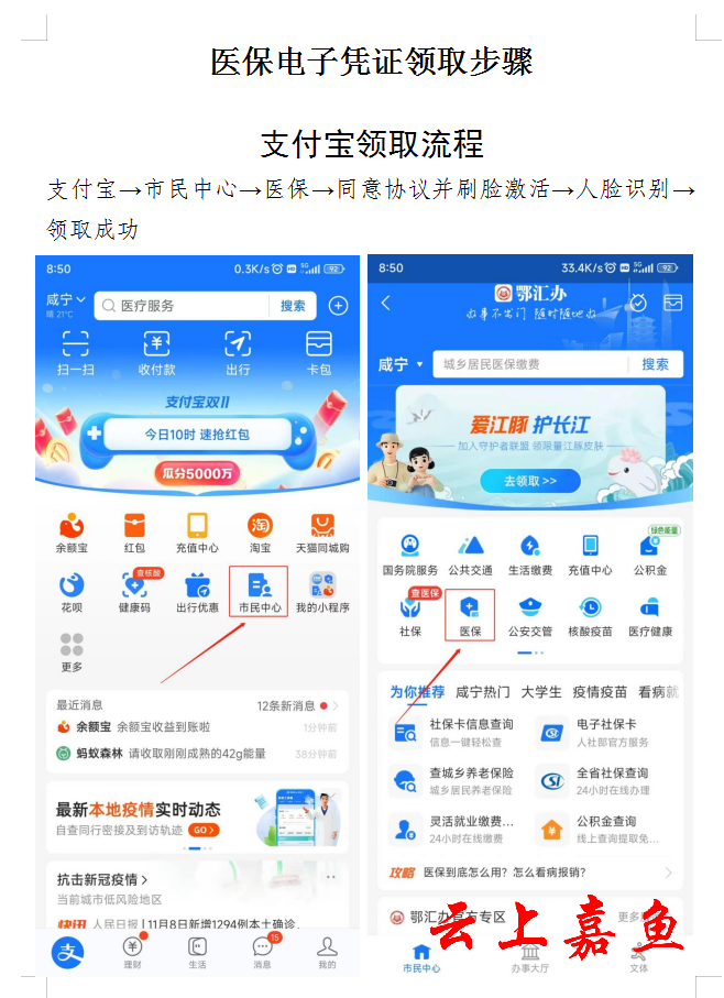 广大市民朋友们: 医保电子凭证是基本医疗保险参保人员在国家医疗保障信息平台上的唯一标识,具备方便快捷、应用场景丰富、全国通用、更加安全四个突出优点。参保人员可以凭医保电子凭证进行医保查询、参保缴费、就诊购药、办理异地就医、医保关系转移等医保相关业务。 在此,倡议大家积极领取医保电子凭证并主动邀请家人朋友及时激活,做到“一码在手,医保无忧”。市民朋友们可以通过微信、支付宝医保电子凭证小程序进行激活。 衷心感谢市民朋友们的大力支持! 嘉鱼县医疗保障局 2023年10月10日
