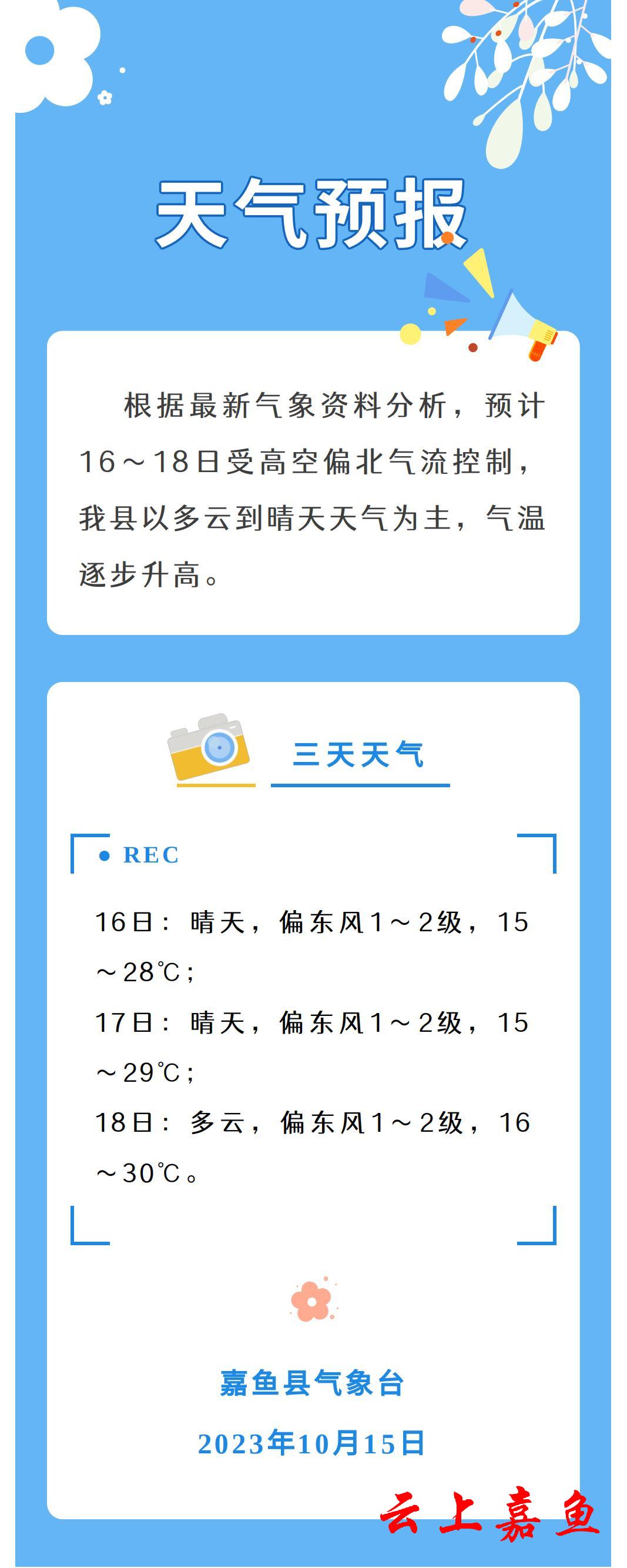 2023年10月15日嘉鱼天气预报