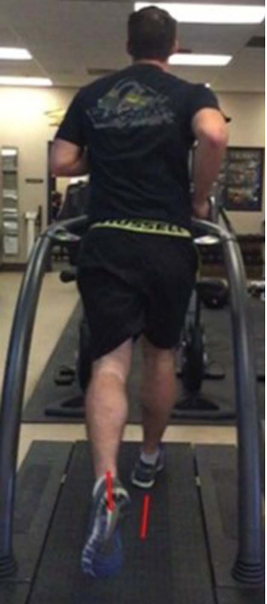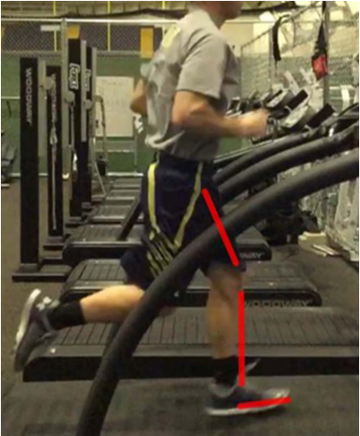△图 5-爆发式推进。红线描绘了使用前脚掌来推离地面。落地时,脚处于更加中立的位置,该位置更易于在向前推动时利用身体的动能。