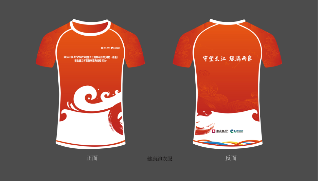 本次健康跑参赛服以红色为主要颜色,红色象征着武汉人民的热情,表达着武汉如火一般的运动热情,红色也代表全力拼搏,突破自我的勇气。