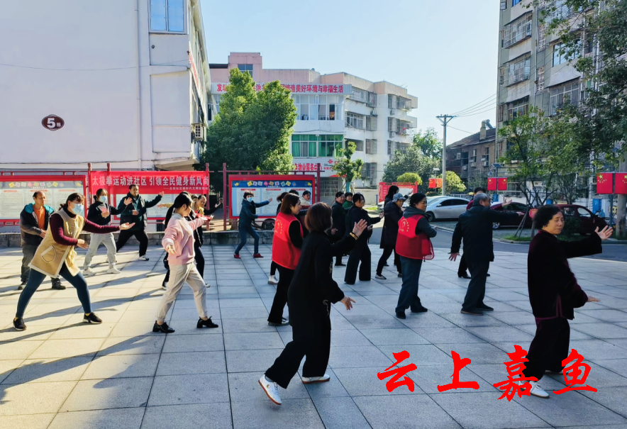 云上嘉鱼报道(全媒体记者祁声坤)11月21日早8点,北街社区新时代文明实践站在文庙山小区文化广场开展“太极拳运动进社区 引领全民健身新风尚”活动,辖区近50名太极拳爱好者集结广场,共赴“太极之约”。