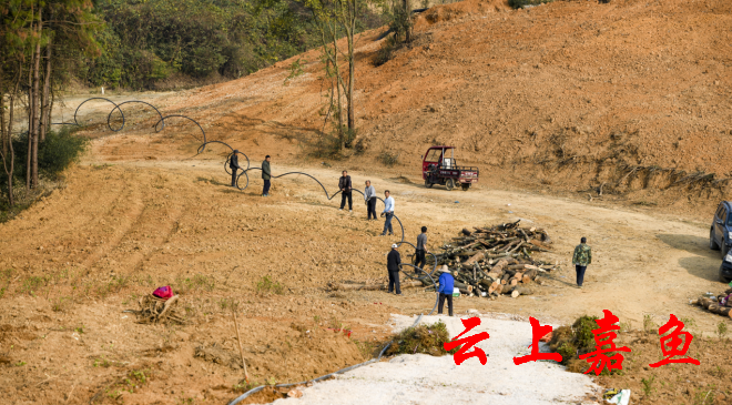 云上嘉鱼报道(全媒体记者雷平 通讯员马心如)11月25日,高铁岭镇广济堂村中药材基地人头攒动,农户们忙着翻土、栽金银花苗、浇水、覆土,架设浇水的电缆,到处是一片大干快上的繁忙景象。