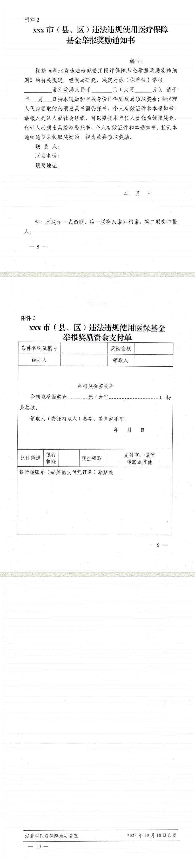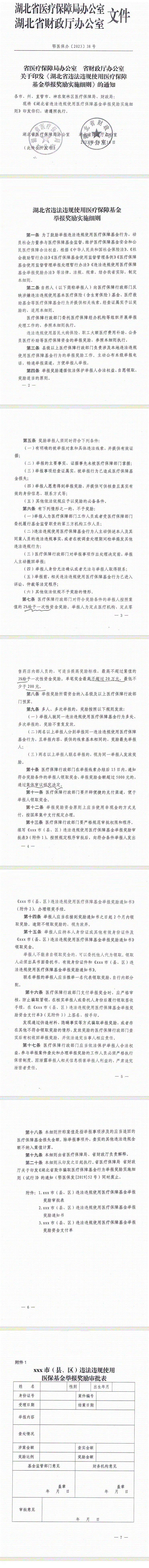 省医疗保障局办公室 省财政厅办公室关于印发《湖北省违法违规使用医疗保障基金举报奖励实施细则》的通知