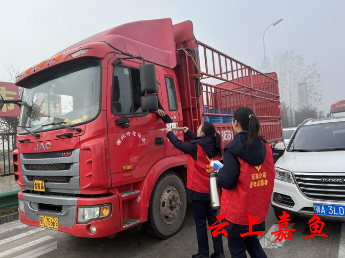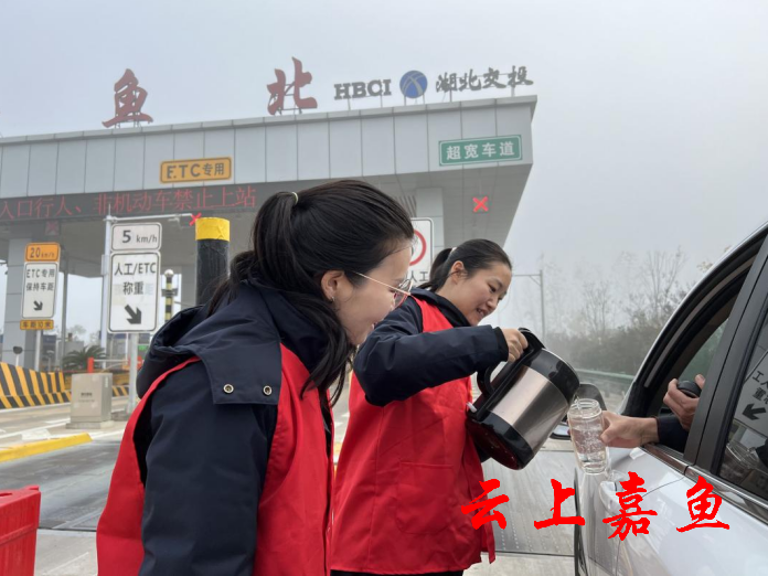 云上嘉鱼报道(通讯员罗天敏 陈杜 余佳晔)11月28日清晨,位于嘉鱼县新街镇的嘉鱼北收费站被大雾笼罩,收费站秒变暖心服务站,志愿者们身披红色马甲,穿梭在排队等候的车流中,贴心地为司乘们送上热水、规划行车路线、宣讲高速ETC办理流程。