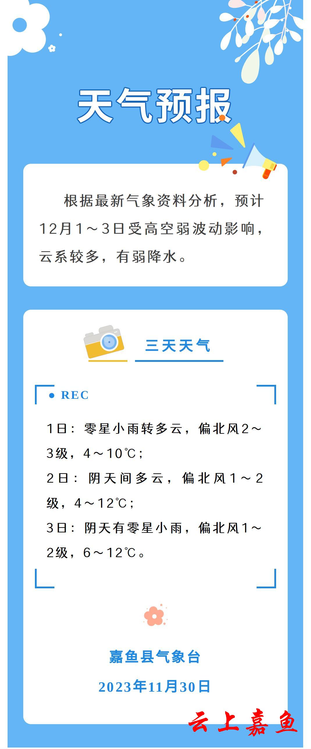 2023年11月30日嘉鱼天气预报