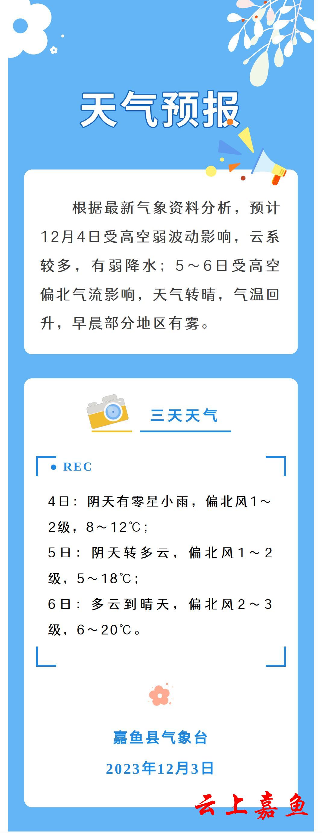2023年12月3日嘉鱼天气预报