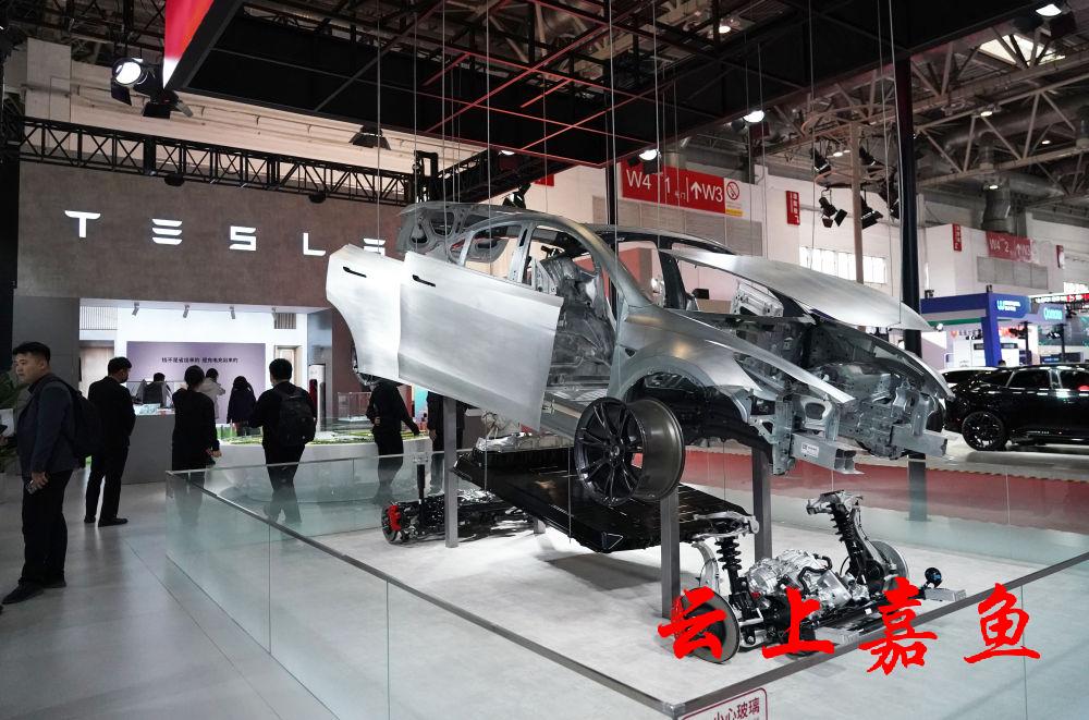这是在首届中国国际供应链促进博览会现场拍摄的特斯拉展位(2023年11月30日摄)。新华社记者 任超 摄
