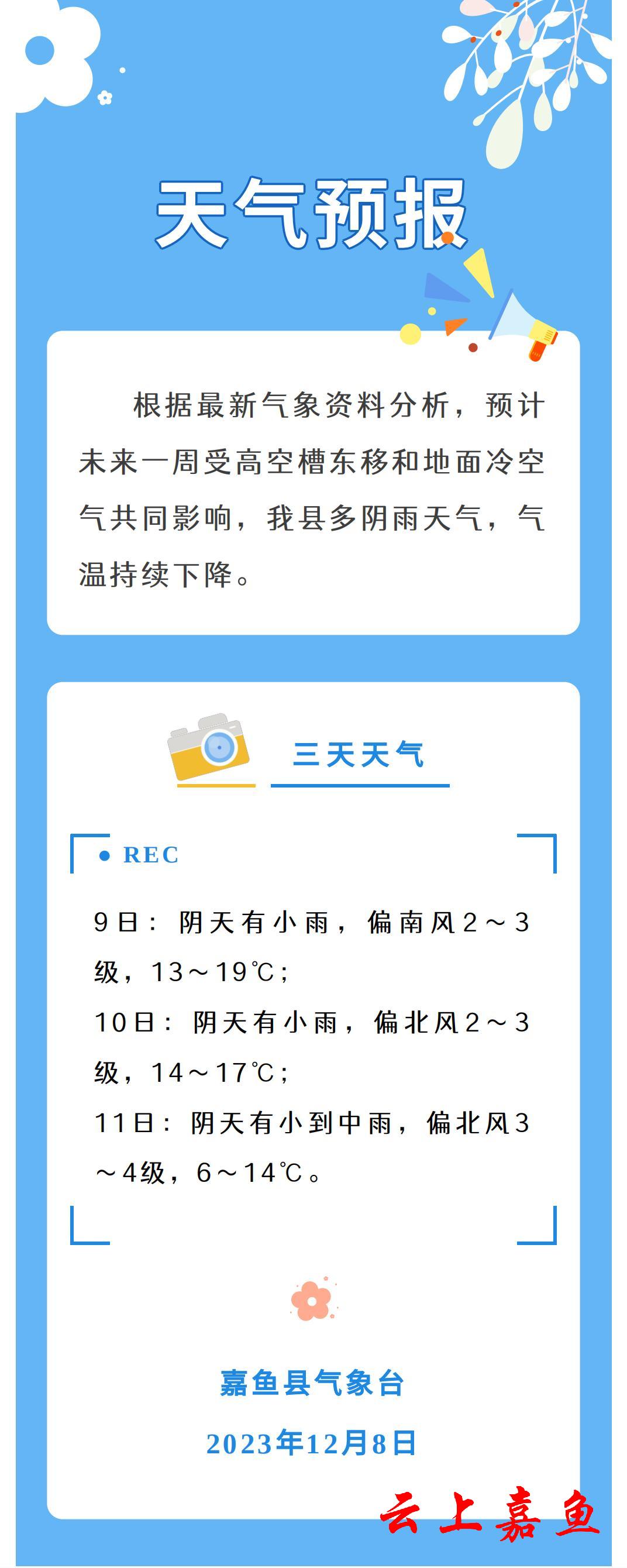 2023年12月8日嘉鱼天气预报