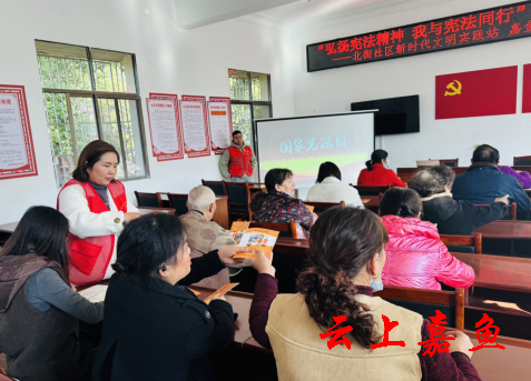 云上嘉鱼报道(全媒体记者祁声坤)为进一步向辖区群众普及法律知识,增强群众法治观念,12月7日,鱼岳镇北街社区新时代文明实践站、北街社区团支部联合嘉鱼县司法局鱼岳司法所开展“弘扬宪法精神 我与宪法同行”宪法宣传周主题活动,辖区近50名群众参加活动。