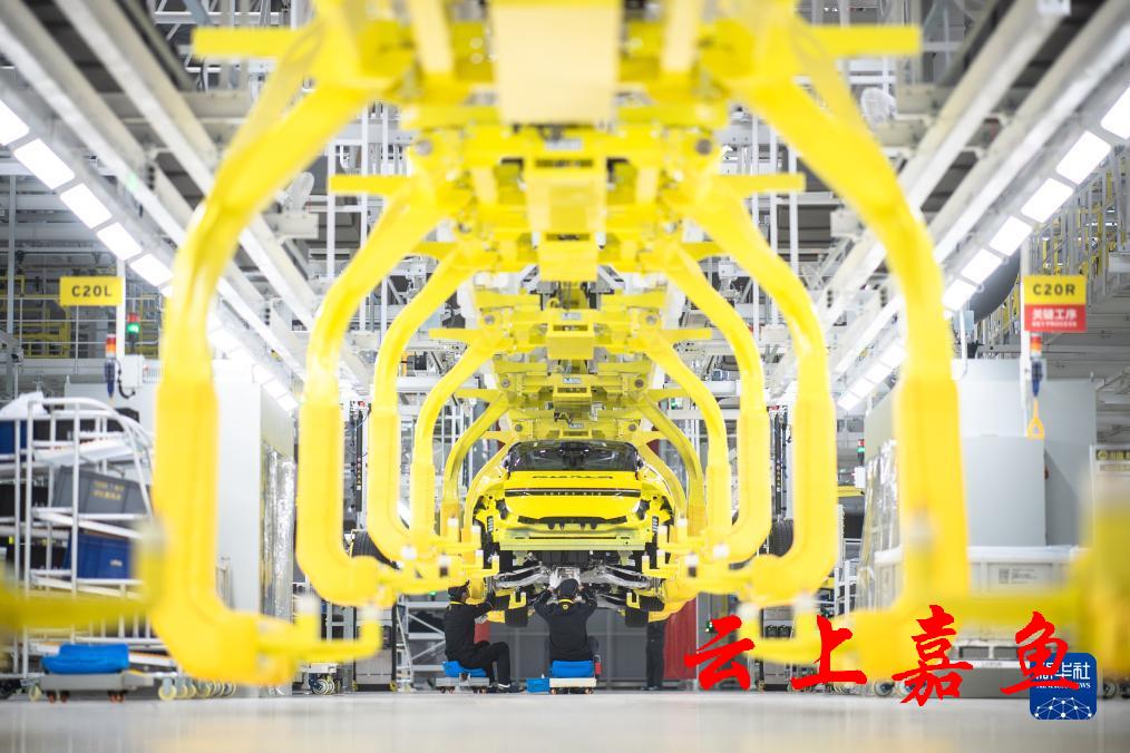 在位于武汉经开区智能网联和电动汽车产业园的路特斯全球智能工厂,工人在流水线上作业(2023年1月11日摄)。新华社记者 肖艺九 摄