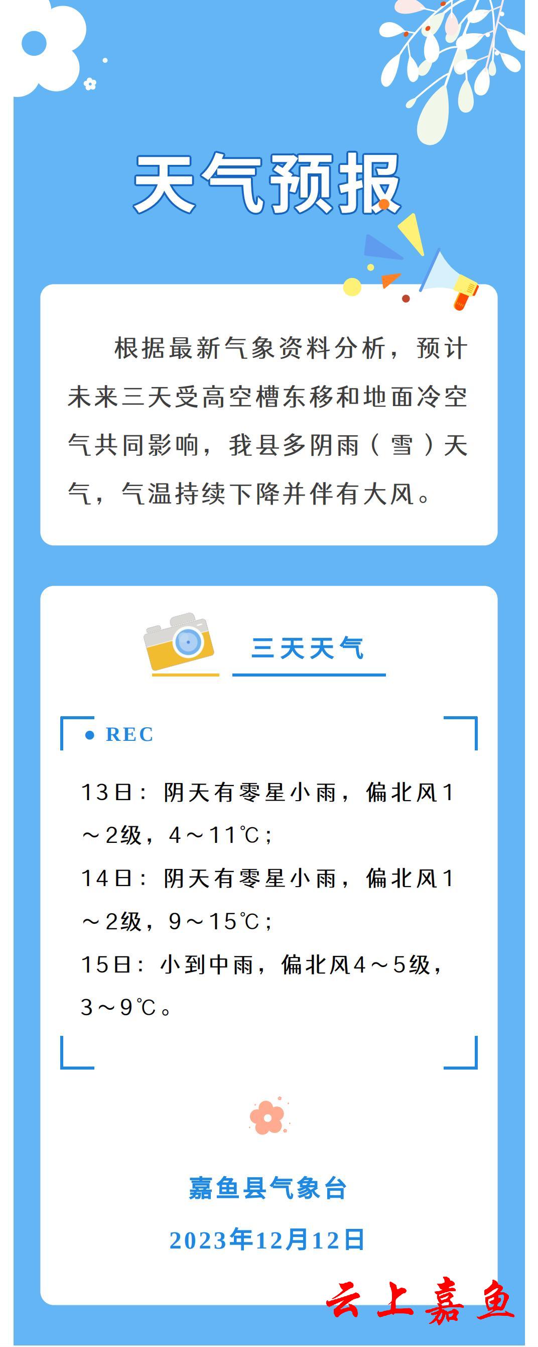 2023年12月12日嘉鱼天气预报