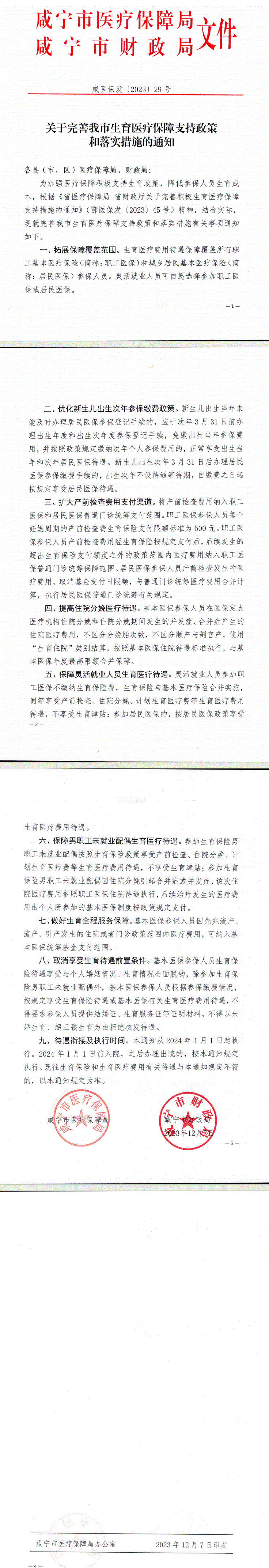 关于完善我市生育医疗保障支持政策和落实措施的通知