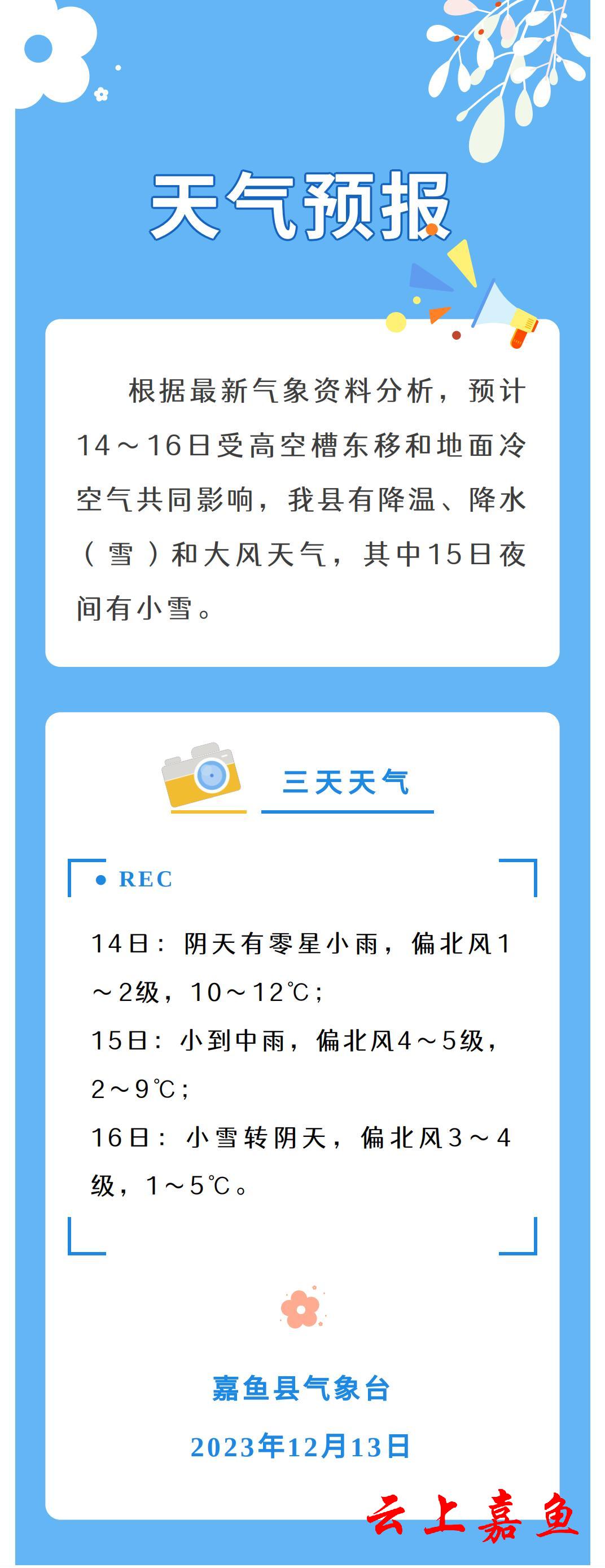 2023年12月13日嘉鱼天气预报
