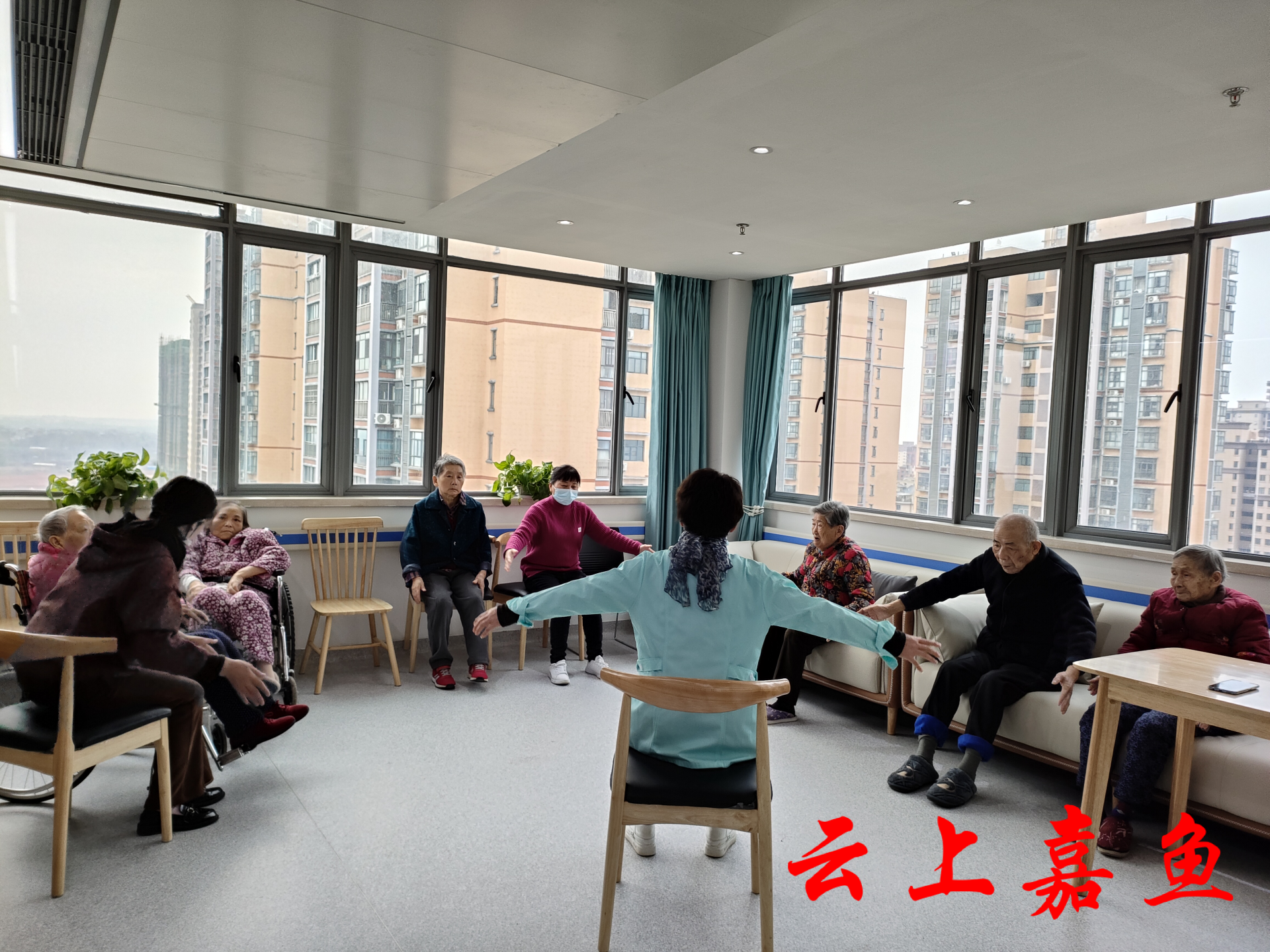 建在武汉大学中南医院嘉鱼医院住院部2号楼13层的医养中心里,每日都能传出欢声笑语。这里的医护康养团队都是专业人才,配有心血管科专家、神经内科专家、中医科专家、养老评估师、健康管理师、营养师等专业团队,不仅有咨询接待室、康复训练室、活动阅览室、治疗室、棋牌室、配餐间、失能老人助浴间等多功能区间,还设有单人间、双人间、三人间及家庭床位,是一所集养老、护理、医疗、康复为一体的高品质新型医养结合服务机构。