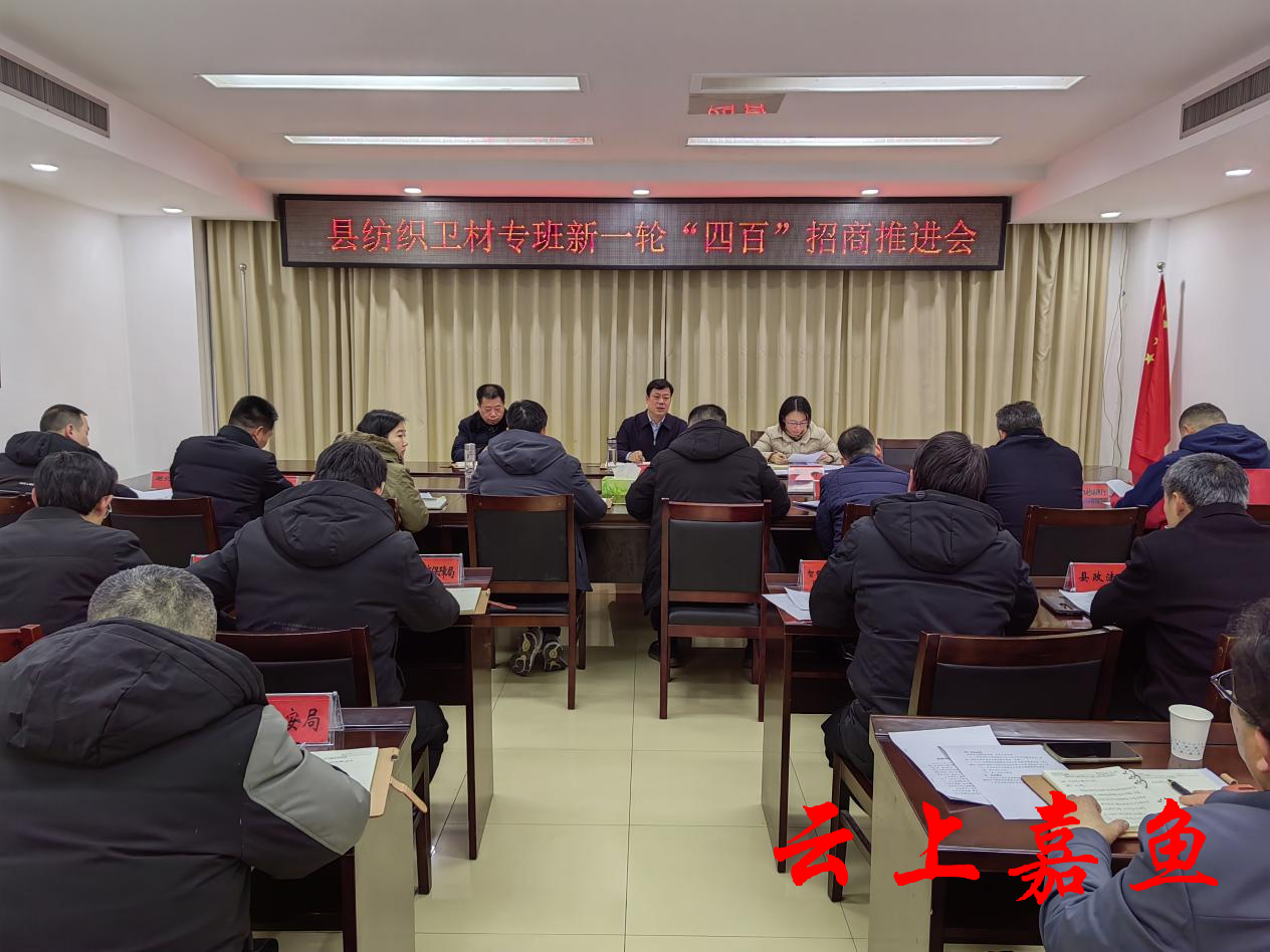 云上嘉鱼报道(全媒体记者熊熙)12月21日晚,县纺织卫材专班新一轮“四百”招商推进会召开,县委书记王永出席会议并讲话,他强调,要树立“四个”理念,增强招商引资本领,用好招商方法,持续提升驻点招商工作质效,以高质量招商引资推动经济社会高质量发展。县委常委、县委办公室主任王卿主持会议,县人大常委会副主任王秀群出席会议。