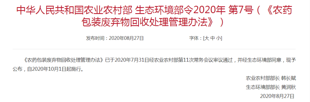 第六条 农药生产者(含向中国出口农药的企业)、经营者和使用者应当积极履行农药包装废弃物回收处理义务,及时回收农药包装废弃物并进行处理。