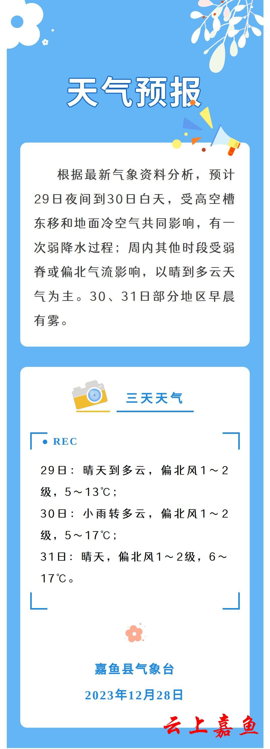 2023年12月28日嘉鱼天气预报