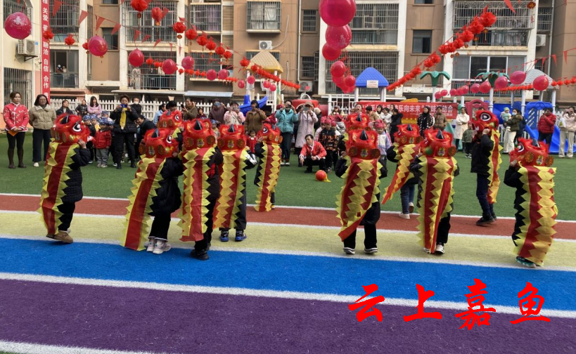 活动现场,老师们将操场布置得喜气洋洋。大家仿佛置身在红色的海洋里,抬头满眼可见高高挂起的灯笼、圆鼓鼓的气球和迎风飘扬的小红旗。