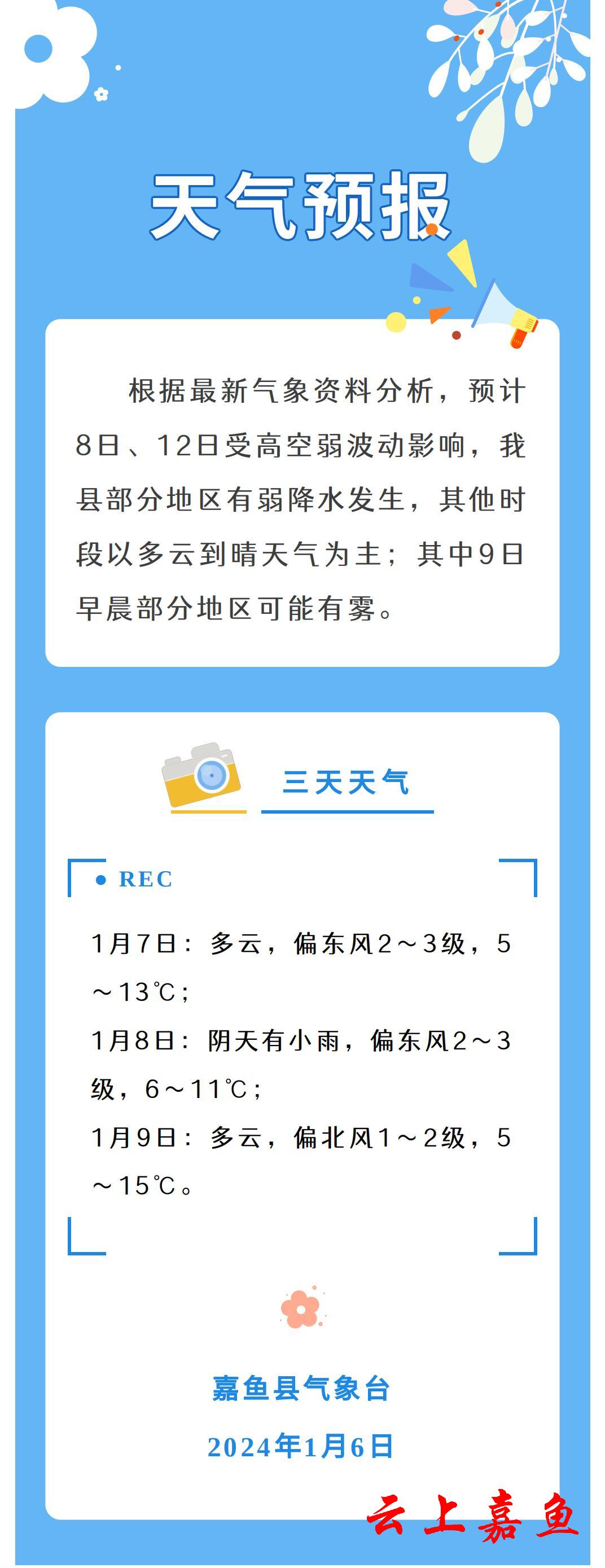 2024年1月6日嘉鱼天气预报