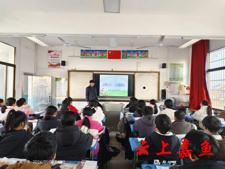 云上嘉鱼报道(通讯员刘加武 刘书帆)为深入推进精神文明建设,进一步提升全体师生文明素养,1月5日,渡普中学开展文明行为我示范专题班会。