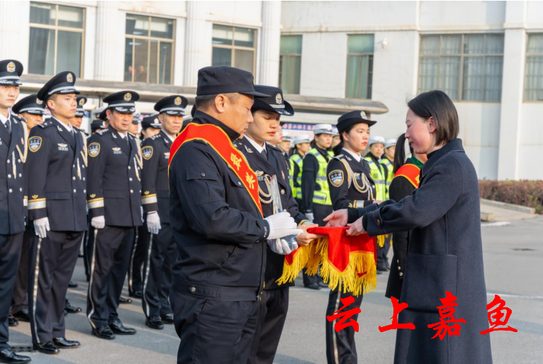 “我代表退休民警,把这面光荣的旗帜交给你们。”在警旗交接仪式中,退休民警代表将满载着荣誉、使命、责任和担当的警旗郑重传递到新警手中,勉励新警秉承和发扬嘉鱼公安的优良传统,不辱使命,勇毅前行,在新时代新征程上续写荣耀,为警旗争辉。