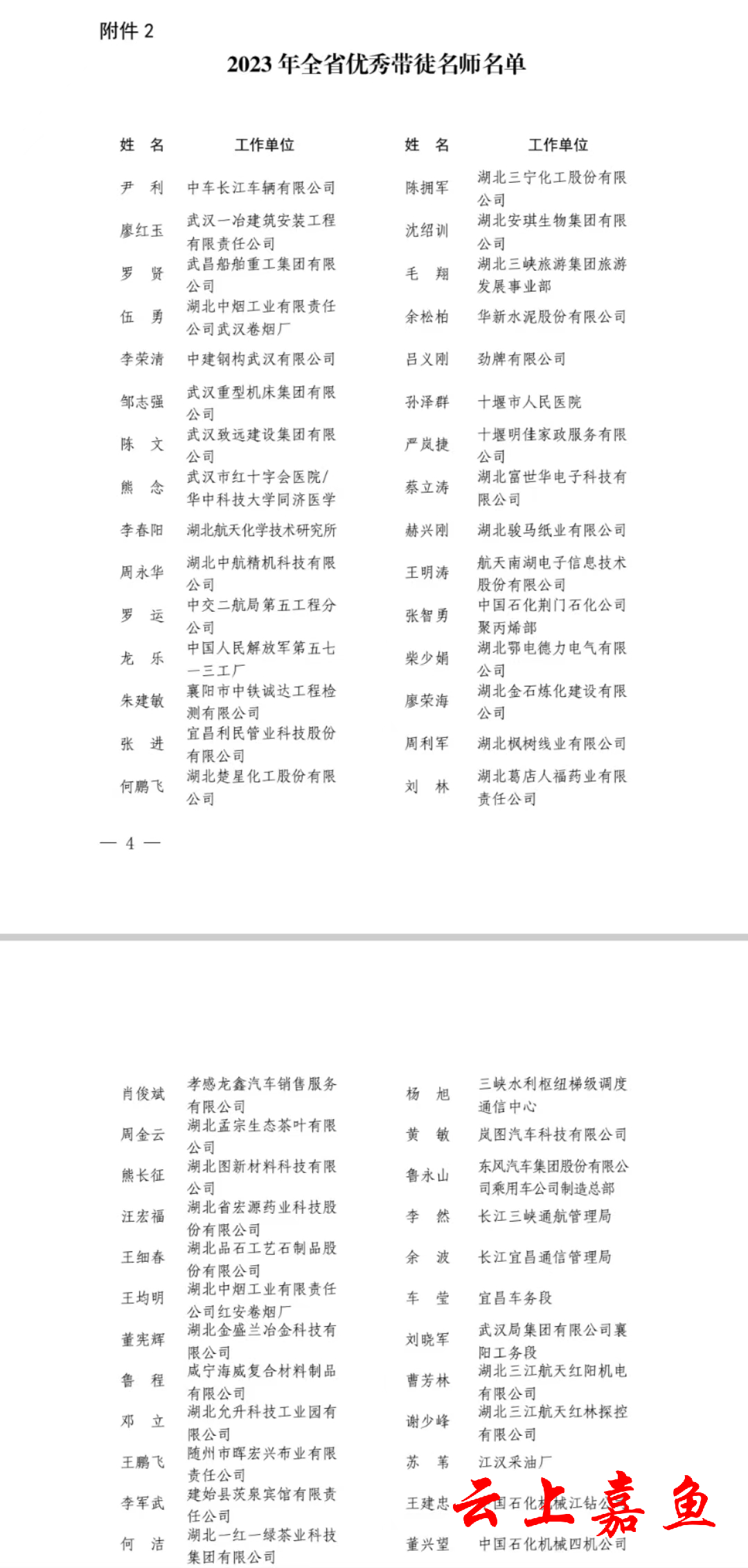 云上嘉鱼报道(通讯员刘菊 周雄)1月10日,从嘉鱼县总工会传来好消息,嘉鱼产业工人新增一名省级“优秀带徒名师”。嘉鱼县湖北金盛兰冶金科技有限公司董宪辉在湖北省总工会对100名优秀带徒名师和200名优秀学习型职工进行的通报表扬中获评为省级“优秀带徒名师”荣誉称号。