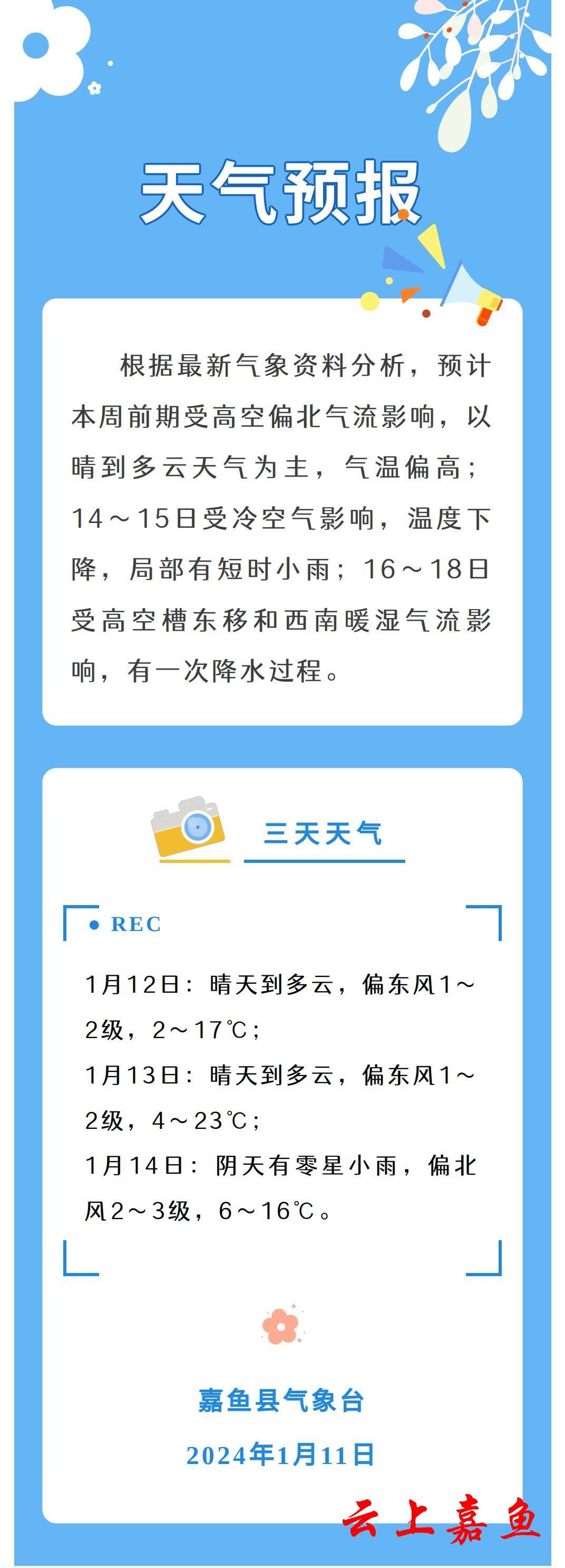2024年1月11日嘉鱼天气预报