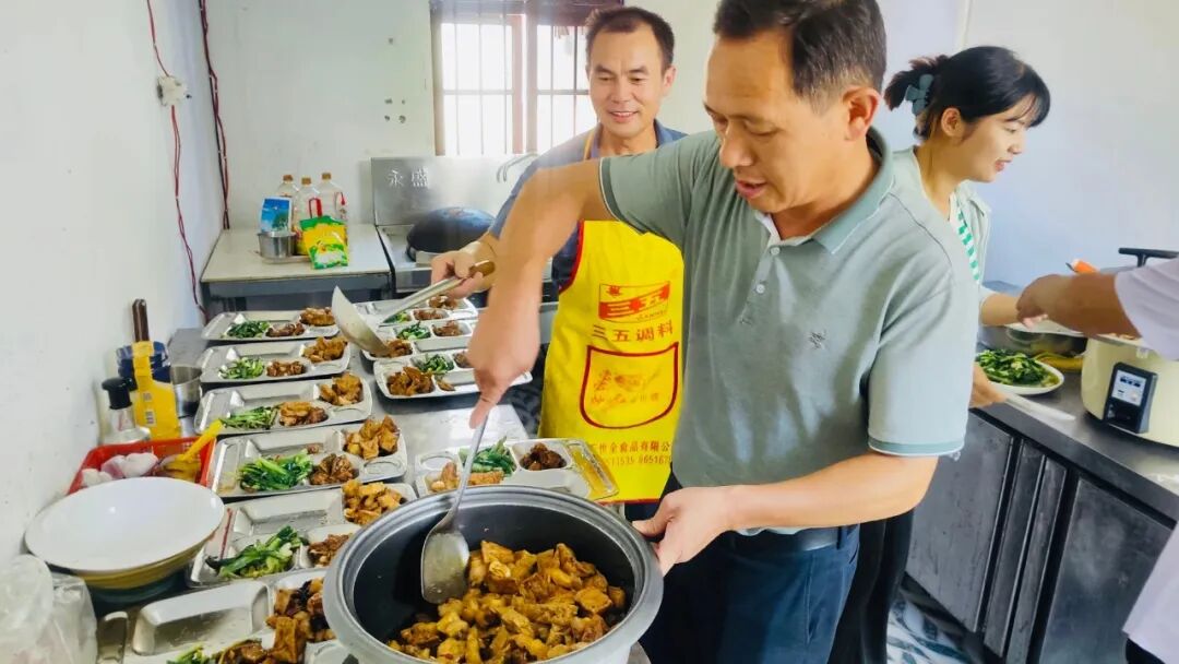 咸安区广东畈村上屋村湾幸福合作社则把运营的责任“打包”交给了本土农业企业咸宁市聚友农业生态有限公司。公司法人、上屋村湾幸福合作社理事长杨六林是本村人,近年来返乡创业,流转了村里数百亩山地搞果树栽培,他的母亲也住在村里。“孝敬村里的老人,也孝敬了我自己的母亲。”杨六林说。他算了笔账,本来自己需要给七八个员工每天支付20元餐费,每月得花4000多元,而现在村里让他运营幸福食堂,场地是现成的,而村里的瓜果蔬菜几乎不用花钱买,每月他用于支付厨师工资、购买食材的费用同样是4000多元。现在,村组70岁以上老人和公司员工都可以在这里免费吃饭,几乎没有增加什么成本。“组里有两个高龄失能老人需要每天送餐,不过住得都很近,我和爱人每天走两步就送到了,不用另外请人。”杨六林说。