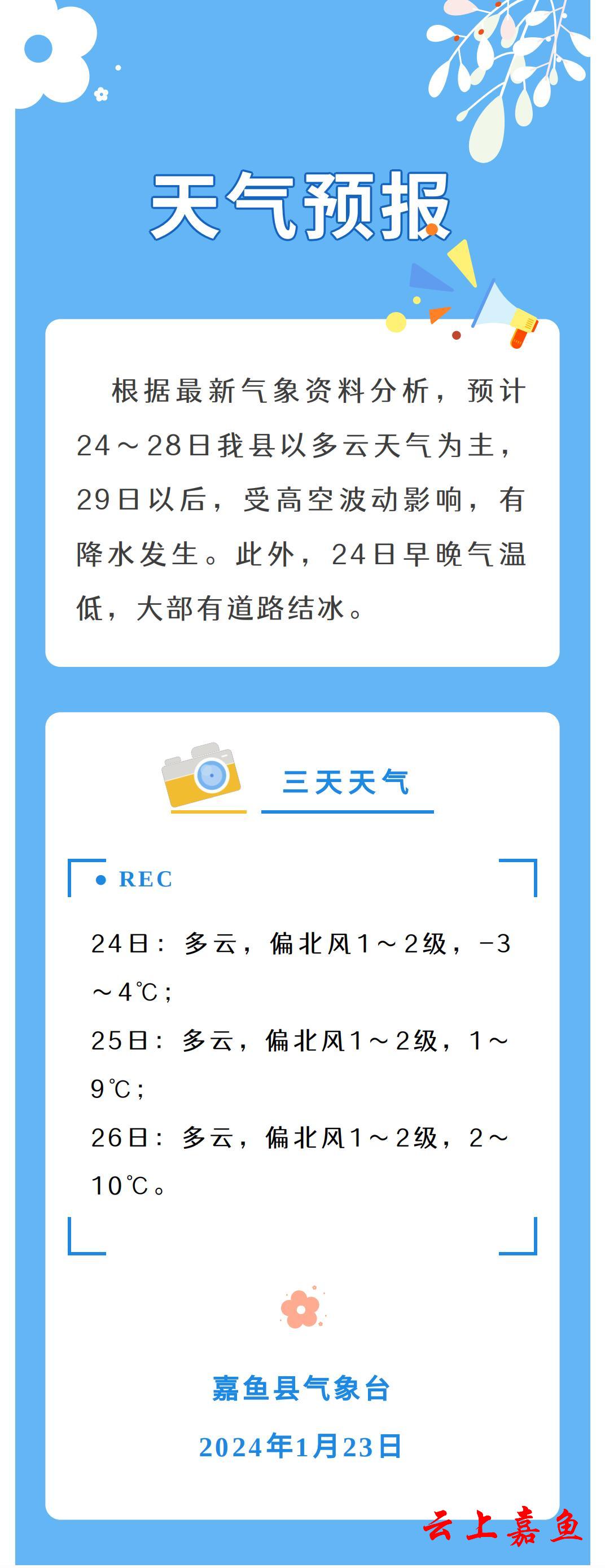 2024年1月23日嘉鱼天气预报