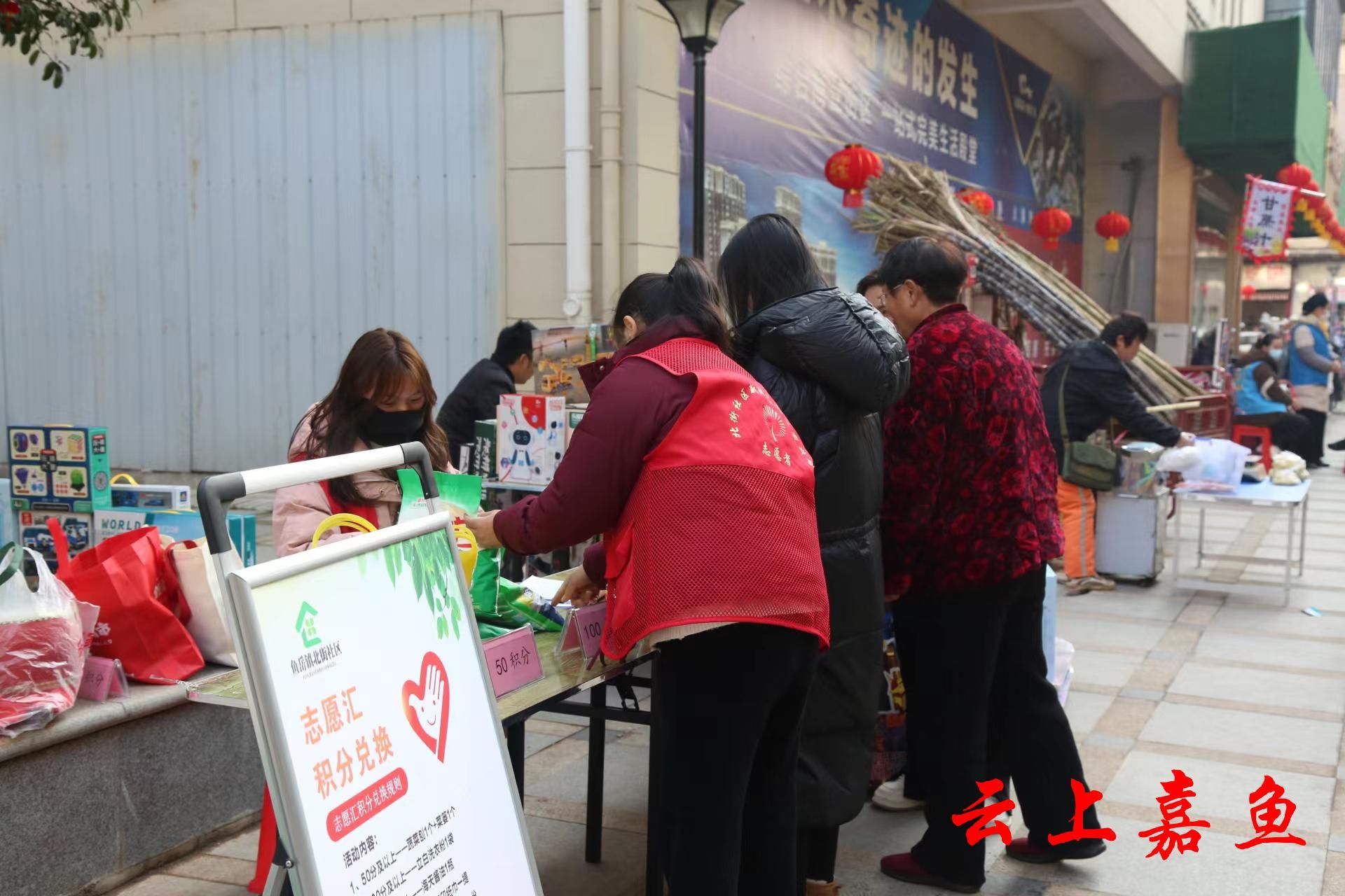 文明集市现场设置了近50个摊位,商品琳琅满目,涵盖了各类年货、特色美食、手工艺品等。北街社区还专门设置了志愿积分兑换小超市,通过“志愿汇APP”信用时长可兑换相应礼品,鼓励更多人参与志愿服务。